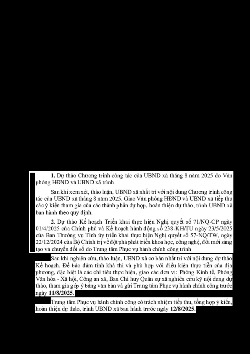 | Tiêu đề văn bản | Thông báo Kết luận Họp Ủy ban nhân dân xã tháng 8 năm 2025 | ||