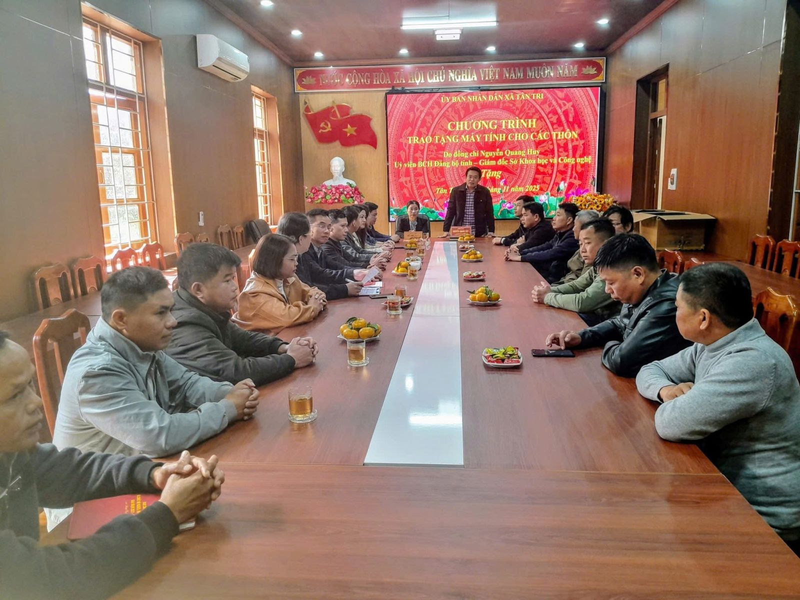 ĐỒNG CHÍ NGUYỄN QUANG HUY, ỦY VIÊN BAN CHẤP HÀNH ĐẢNG BỘ TỈNH, GIÁM ĐỐC SỞ KHOA HỌC VÀ CÔNG NGHỆ THĂM MÔ HÌNH LẠC ĐỎ VÀ TRAO TẶNG 10 MÁY TÍNH CHO CÁC THÔN TRÊN ĐỊA BÀN XÃ TÂN TRI