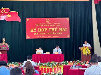 Sáng ngày 29/7/2025, tại Nhà văn hóa xã Tân Tri, Hội đồng nhân dân xã Tân Tri khóa XX, nhiệm kỳ 2021–2026 đã tổ chức kỳ họp thứ hai (kỳ họp chuyên đề) nhằm xem xét, thảo luận và quyết nghị một số nội dung quan trọng trong công tác quản lý, điều hành phát triển kinh tế - xã hội của địa phương.