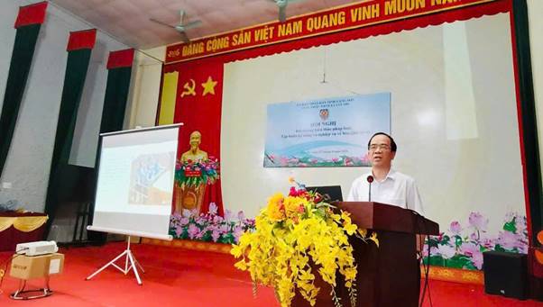 Báo cáo viên Sở Tư pháp tỉnh truyền đạt các nội dung tại hội nghị