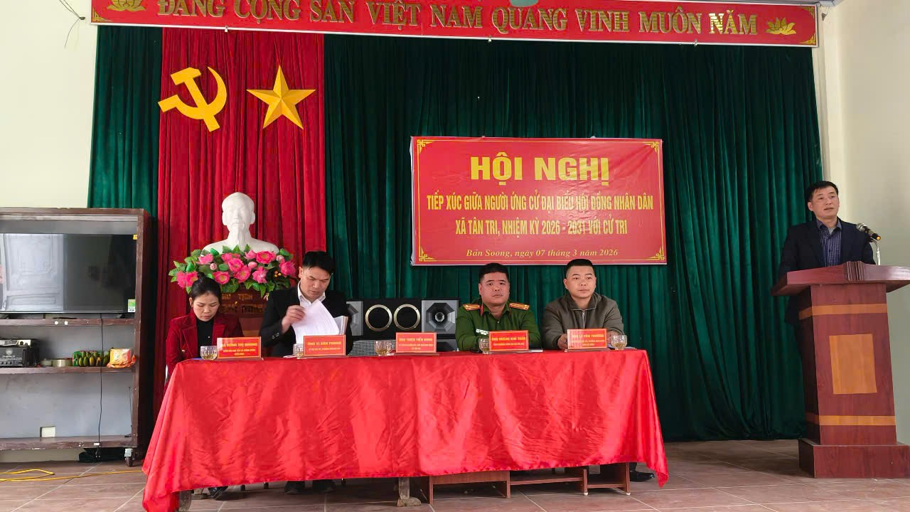 Ngày 07/03/2026, các ứng cử viên đại biểu Hội đồng nhân dân (HĐND) xã Tân Tri, nhiệm kỳ 2026 – 2031 tại Đơn vị bầu cử số 03 xã Tân Tri đã tổ chức tiếp xúc cử tri vận động bầu cử tại địa bàn các thôn Bản Khuông, Nà Thí, Bản Soong và Bản Cầm.