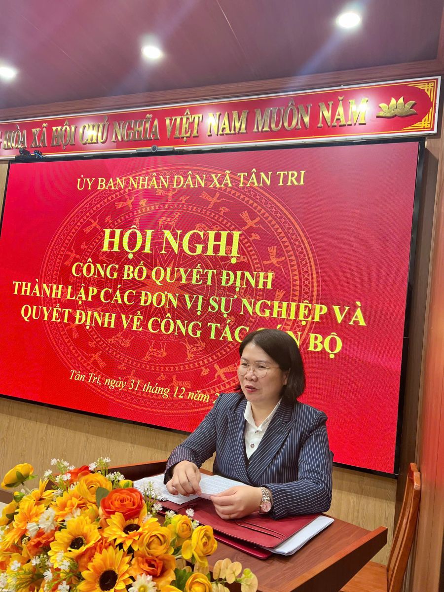 Tại Hội nghị, UBND xã đã công bố Quyết định thành lập Trung tâm Dịch vụ công ích xã Tân Tri và Quyết định thành lập Trạm Y tế xã Tân Tri trực thuộc UBND xã, qua đó từng bước kiện toàn tổ chức bộ máy theo hướng tinh gọn, hiệu lực, hiệu quả; nâng cao năng lực quản lý, điều hành và chất lượng cung ứng các dịch vụ công thiết yếu, đáp ứng ngày càng tốt hơn yêu cầu chăm lo đời sống, bảo vệ sức khỏe và phục vụ Nhân dân trên địa bàn xã.