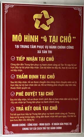 Với phương châm “Nhanh chóng - Công khai - Minh bạch - Vì Nhân dân phục vụ”, Trung tâm triển khai mô hình “4 tại chỗ”, gồm: tiếp nhận tại chỗ, thẩm định tại chỗ, phê duyệt tại chỗ và trả kết quả tại chỗ. Đồng thời, Trung tâm thực hiện niêm yết công khai, đầy đủ các thủ tục hành chính theo từng lĩnh vực chuyên môn, tạo thuận tiện cho người dân tra cứu và thực hiện.