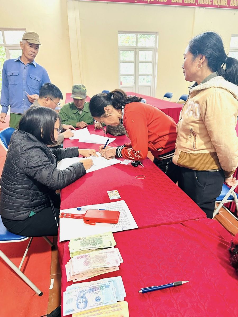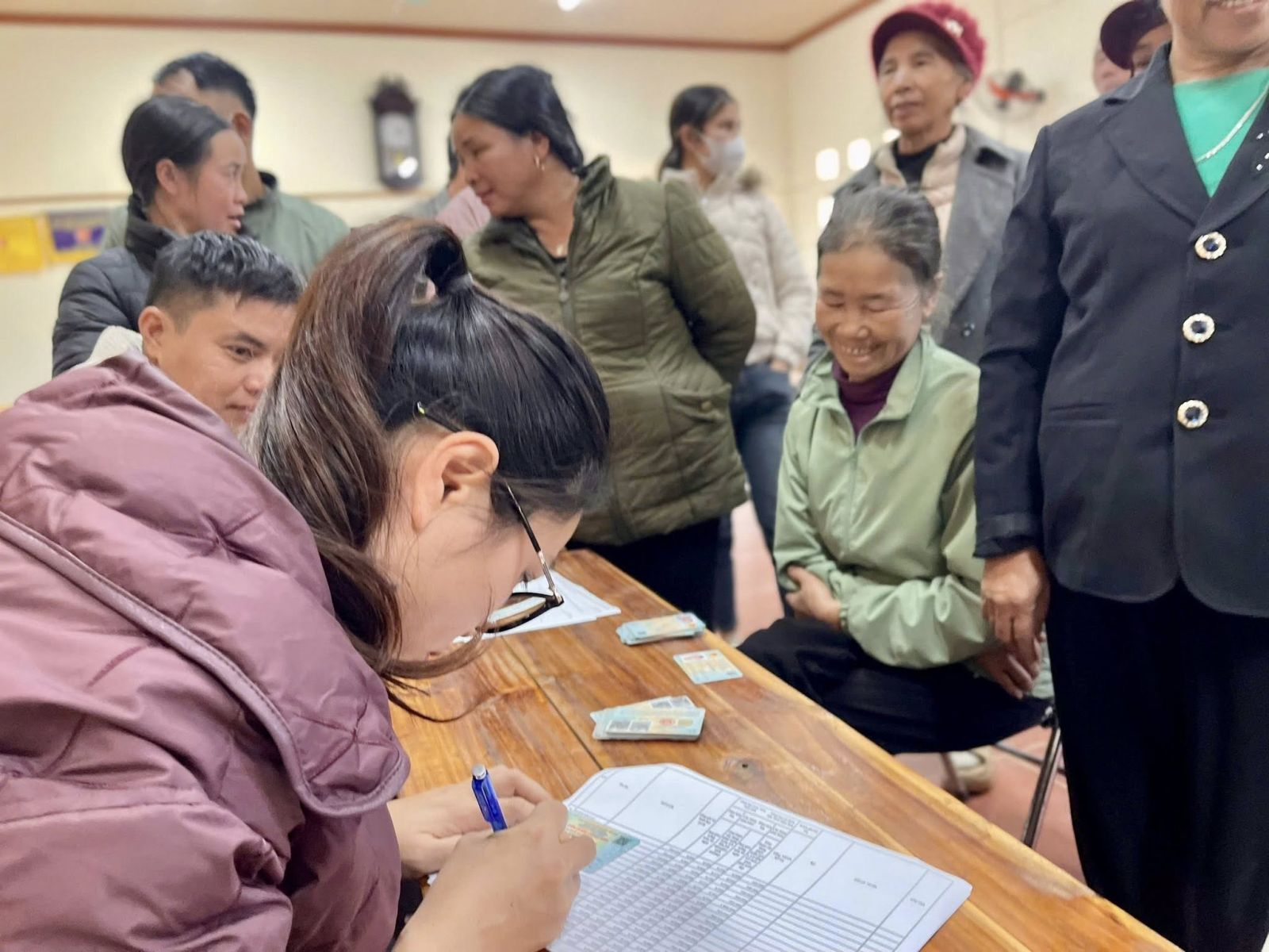 Buổi chi trả được tổ chức tại Nhà văn hoá xã và Nhà văn hoá các thôn trung tâm, bảo đảm công khai, minh bạch, đúng đối tượng, đúng chế độ. Công chức chuyên môn và lực lượng hỗ trợ được phân công phụ trách từng điểm chi trả, hướng dẫn người dân thực hiện các thủ tục cần thiết, bảo đảm quá trình chi trả diễn ra thuận lợi, nhanh chóng và an toàn.