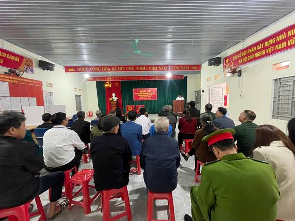 Tại Khu vực bỏ phiếu số 04 (Nhà văn hóa thôn Vũ Thắng A): Đồng chí Hoàng Vĩnh Lập – Phó Bí thư Thường trực Đảng ủy đã dự Lễ khai mạc tại đơn vị bầu cử số 04, chứng kiến những lá phiếu đầu tiên của cử tri địa phương.