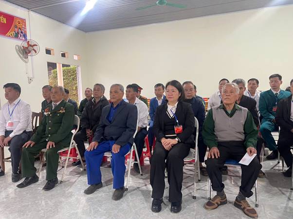 Đồng chí Dương Thị Thanh Thịnh – Phó Bí thư Đảng ủy, Chủ tịch UBND xã dự lễ khai mạc Tại Khu vực bỏ phiếu số 03 (Nhà văn hóa thôn Bản Cầm)