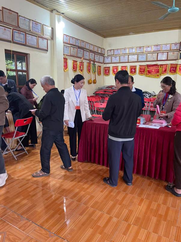 Tại Khu vực bỏ phiếu số 01 (Nhà văn hóa thôn Hợp Nhất): Đồng chí Lê Thị Nga – Bí thư Đảng ủy, Chủ tịch HĐND xã đã tới dự Lễ khai mạc và động viên tổ bầu cử cùng bà con cử tri đơn vị bầu cử số 01.