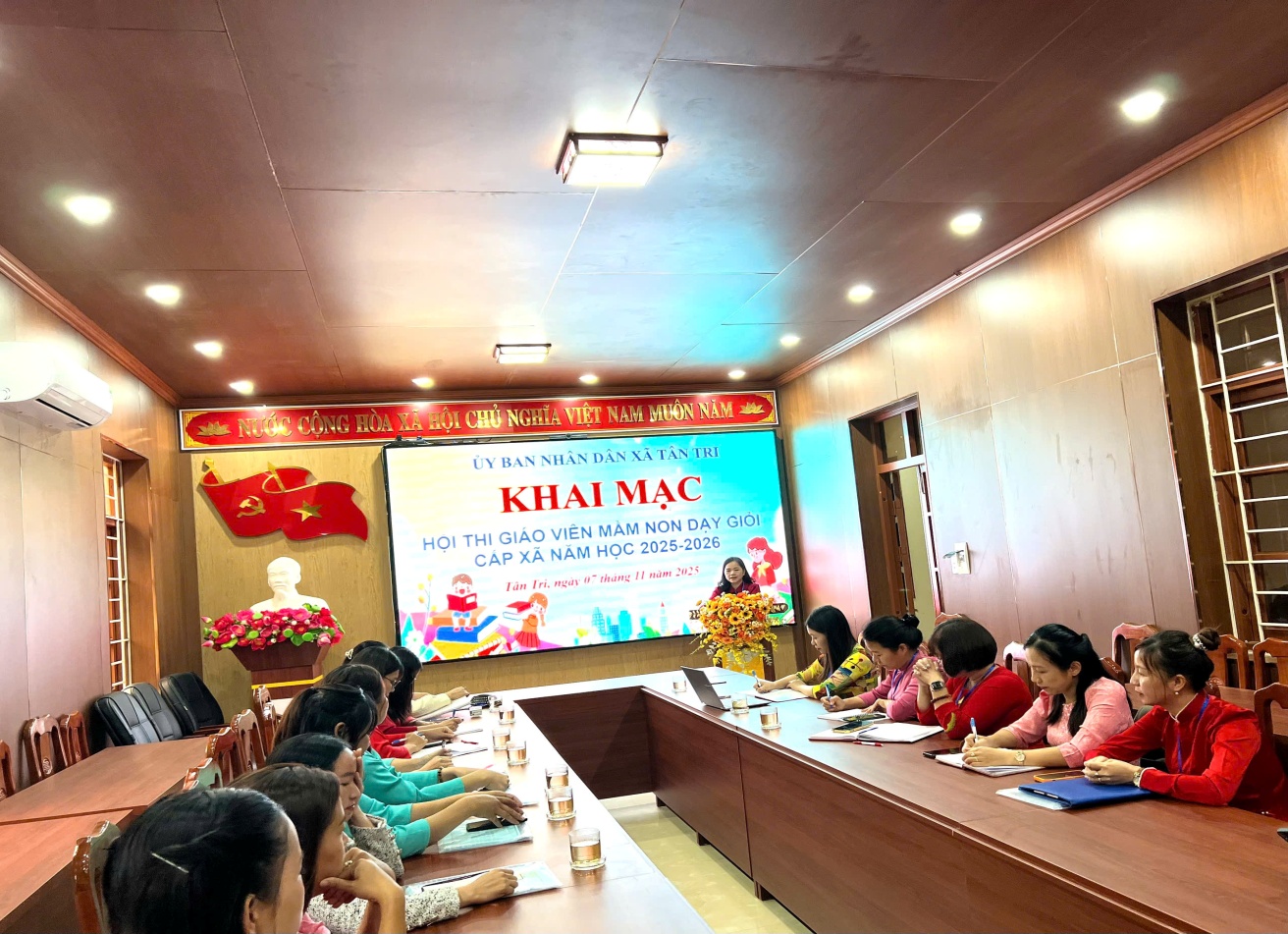 Thực hiện Kế hoạch số 56-KH/UBND, ngày 29 tháng 9 năm 2025 về Tổ chức Hội thi giáo viên dạy giỏi cấp học Mầm non năm học 2025 – 2026, ngày 07/11/2025, Ủy ban nhân dân xã Tân Tri tổ chức Khai mạc Hội thi Giáo viên dạy giỏi cấp học Mầm non.