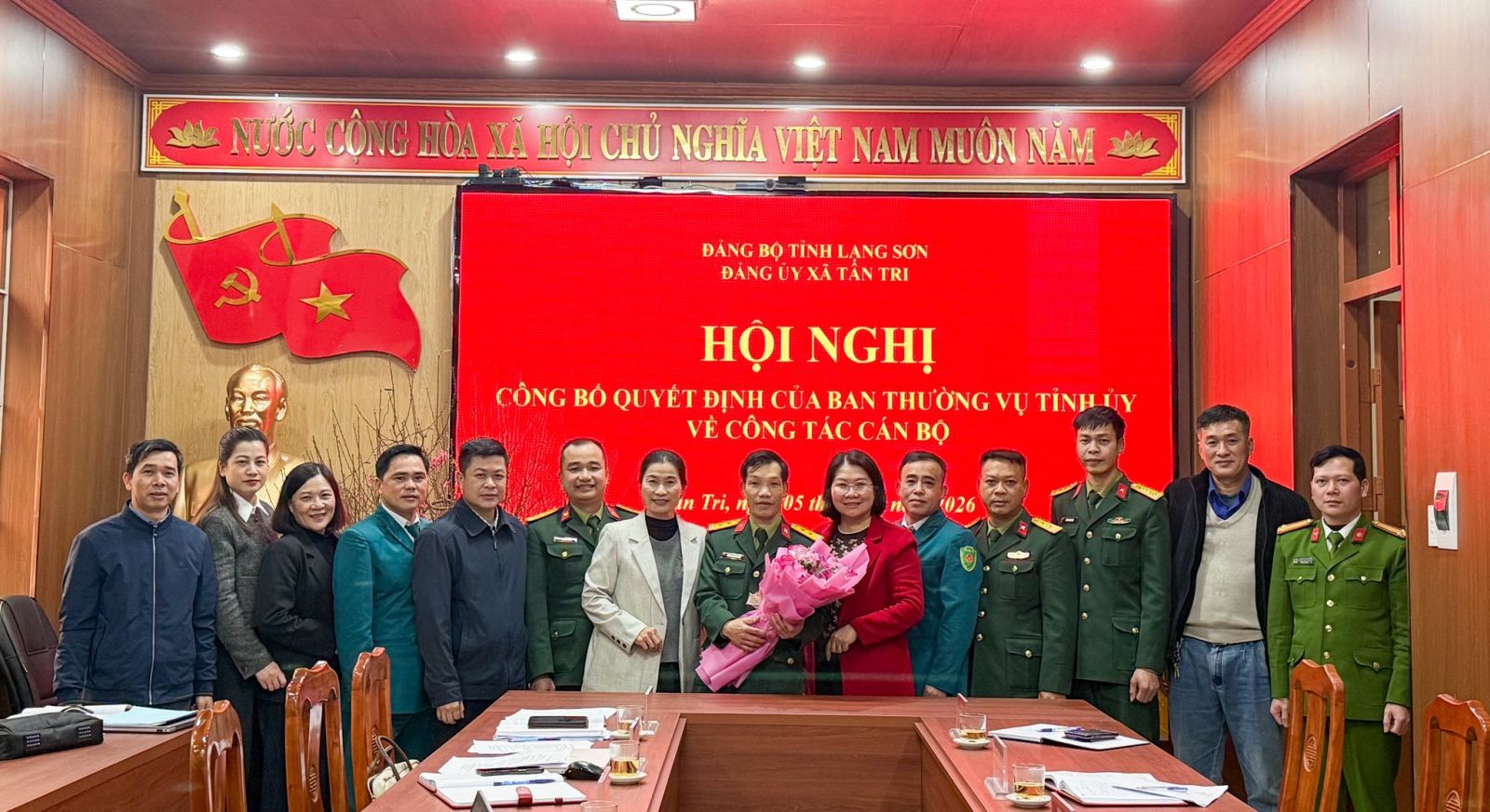 Tại hội nghị, đại diện Đảng ủy xã đã công bố Quyết định số 253-QĐ/TU ngày 31/01/2026 của Ban Thường vụ Tỉnh ủy về việc chỉ định đồng chí Dương Xuân Nguyện, Trung tá, Chỉ huy trưởng Ban Chỉ huy Quân sự xã Tân Tri, tham gia Ban Chấp hành, Ban Thường vụ Đảng ủy xã Tân Tri nhiệm kỳ 2025 – 2030.