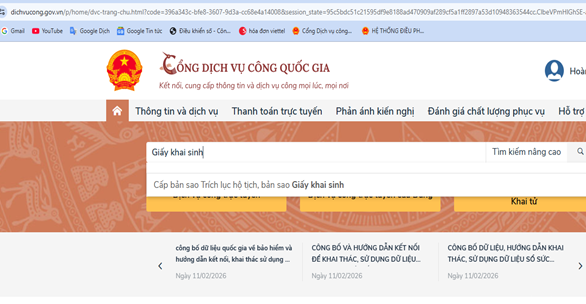 Tại giao diện Cổng dịch vụ công Quốc gia người nộp nhập từ khóa tìm kiếm (tùy theo TTHC mà người nộp có nhu cầu tìm hiểu):