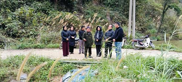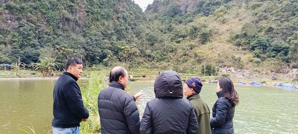 Các Đồng chí lãnh đạo tỉnh và xã kiểm tra thực tế tại mô hình nuôi cá