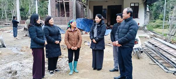 Các Đồng chí lãnh đạo tỉnh và xã thăm gia đình bà Lương Thị Roan thôn Khau Ràng, hộ nghèo vừa được hỗ trợ kinh phí xây dựng nhà ở từ nguồn của Ủy ban MTTQ VN tỉnh hỗ trợ